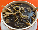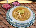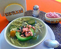 Un delicioso caldo de pollo desmenuzado, tostadas, jugo de lima y especias yucatecas.