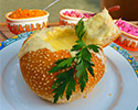Queso bola, manchego y Philadelphia juntos formando una deliciosa crema que se sirve dentro de un pan.